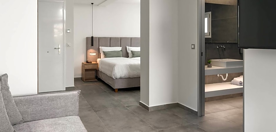 Ammos-Ilios Maisonette is 710 square feet and includes 2 single beds 80-130 width plus 2 sofa beds.