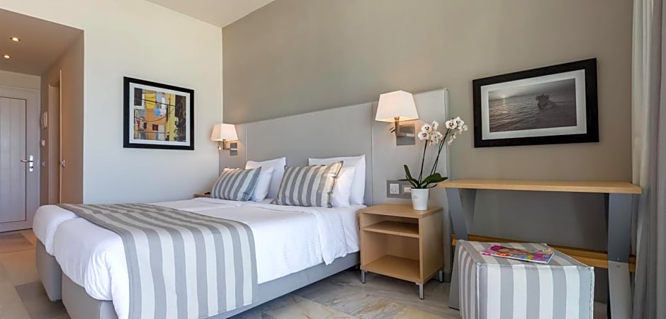 This hotel boasts an impressive array of amenities designed to indulge every guest, from the shimmering outdoor swimming pool and kids' pool to the inviting sun deck and lush garden. Stay connected with free Wi-Fi, keep active at the fully equipped fitness center, or unwind with a massage (available at extra charge). For outdoor fun, you can try your hand at tennis, go horseback riding, or simply lounge on the beach with chairs, umbrellas, and loungers—some at an extra fee.